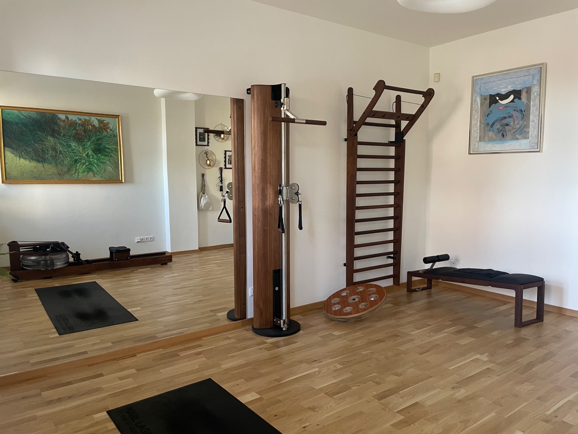Posilovna je vybavena přístroji Nohrd vyrobenými z ořechového dřeva. Anatomicky a ergonomicky tvarované rukojeti, vůně kůže v zátěžových sáčcích, šlouchání vody při veslování, to vše zpříjemní Váš trénink a přinese větší chuť do cvičení.